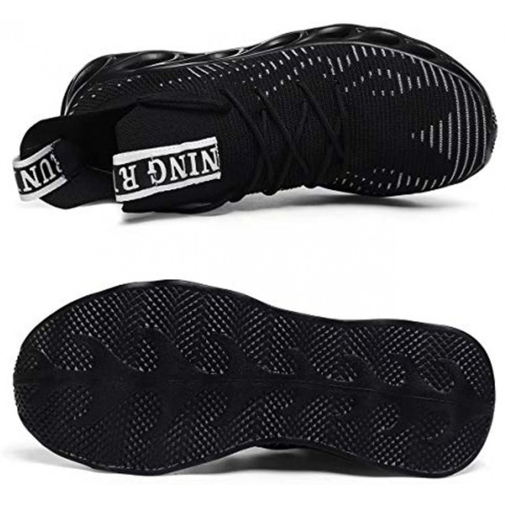 Men's Running Shoes Breathable Knit Slip On Sneakers Lightweight Athletic Shoes Casual Sports Shoes All Black