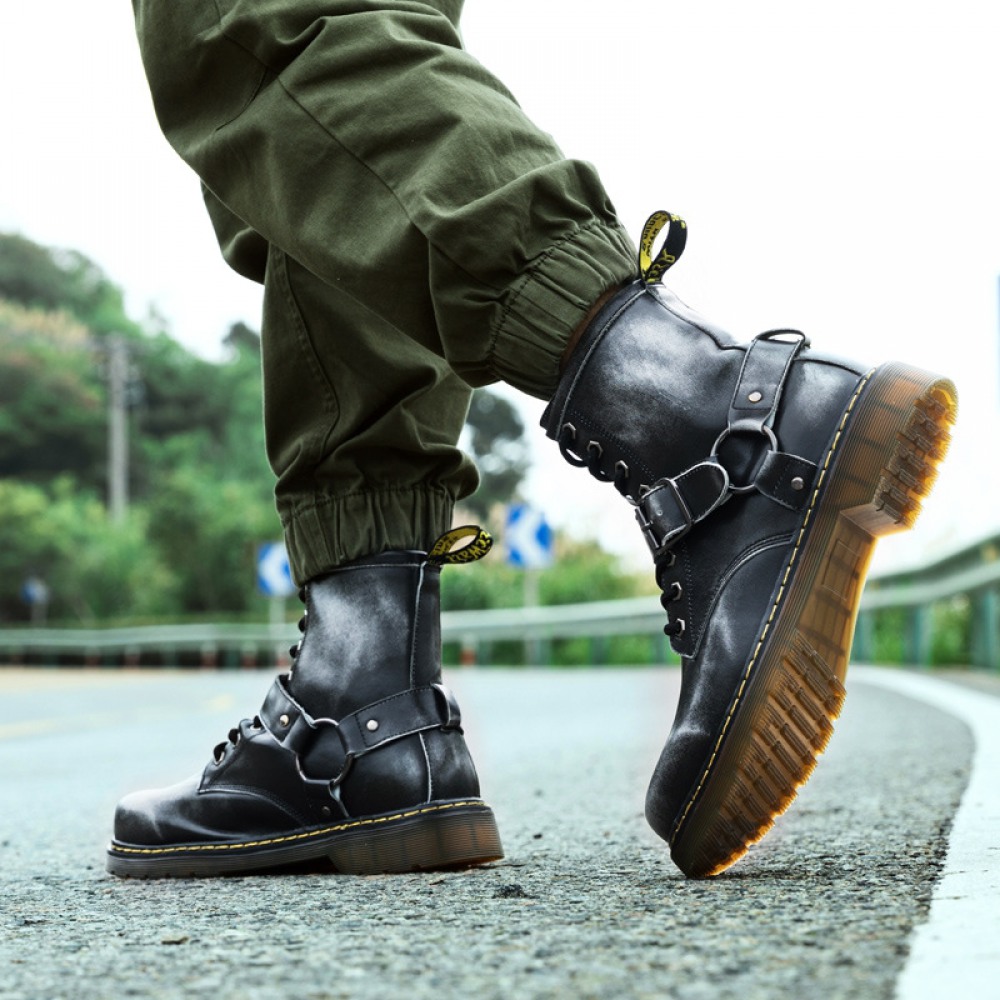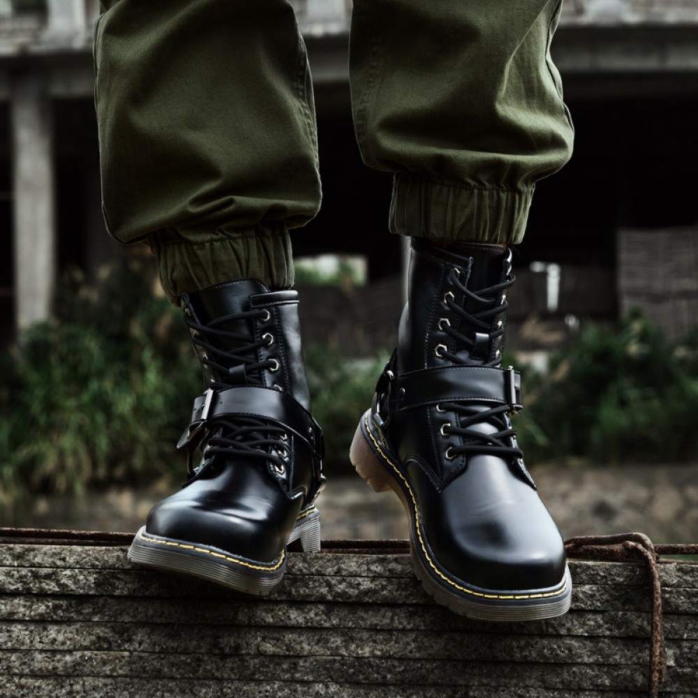 Men's British Style Tooling Boots Trend High-Top Shoes Casual Breathable Short Martin Boots