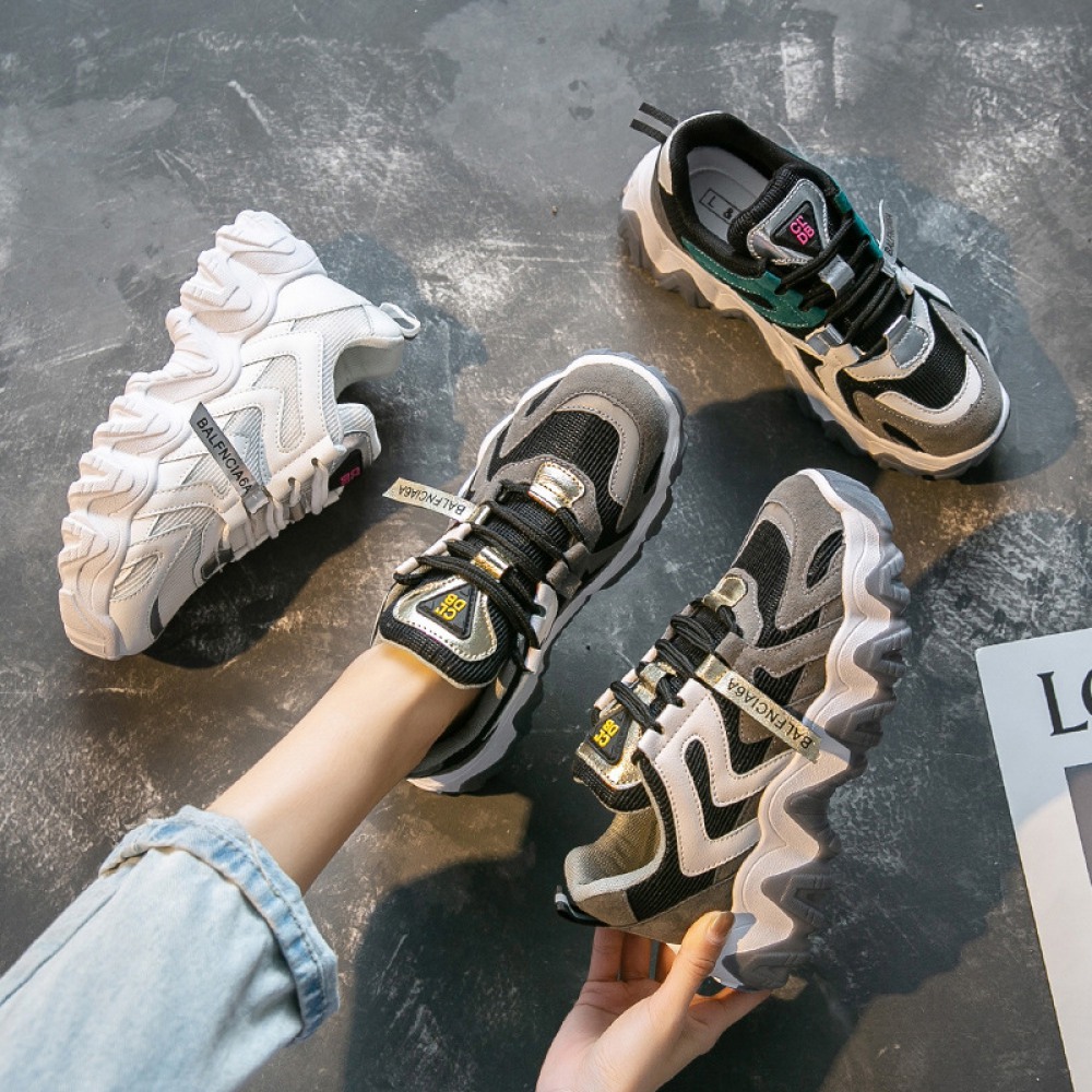 Women's New Autumn Trendy Breathable Thick-Soled Increased Mesh Surface Sports and Leisure Shoes