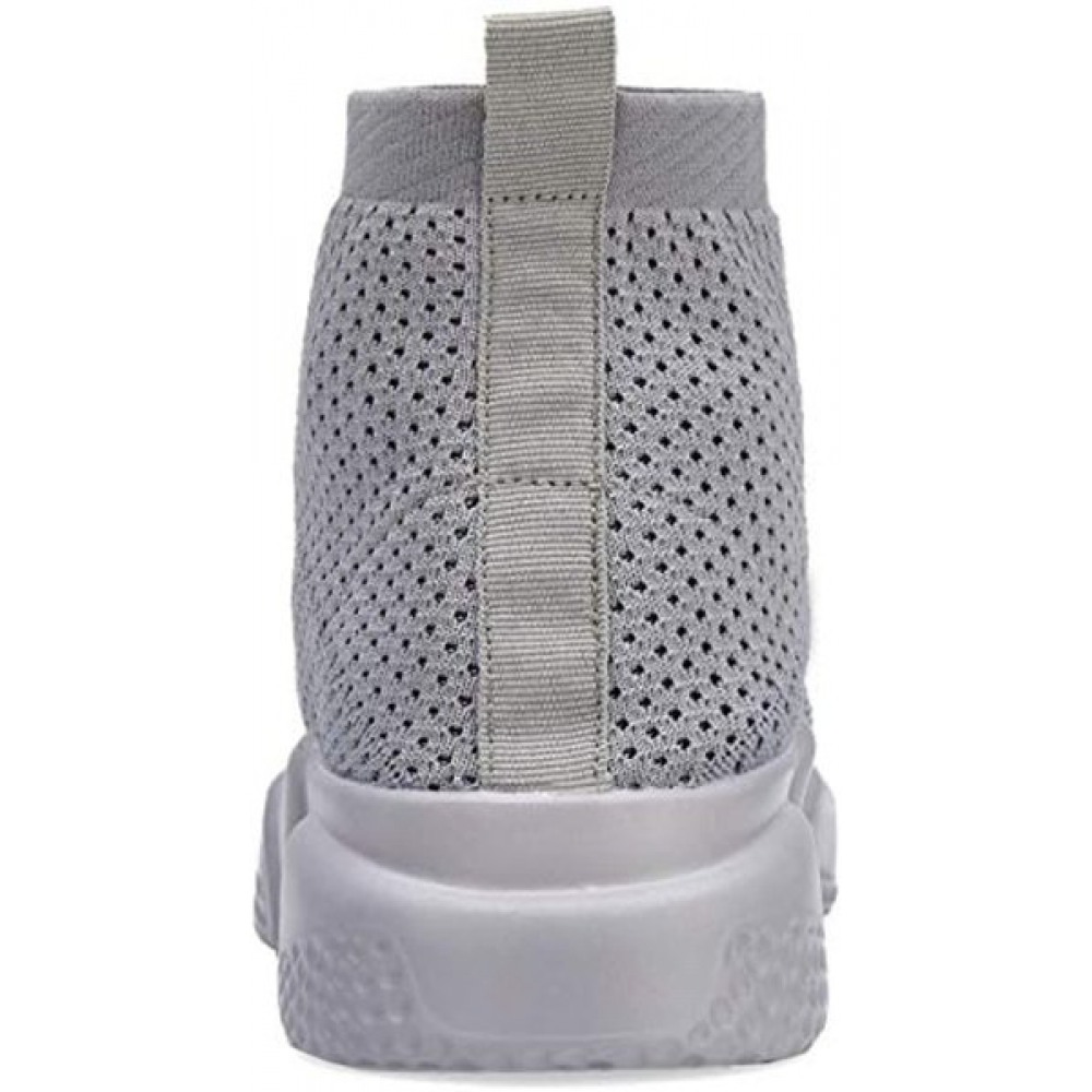 Men's Breathable Knit Slip On Sneakers Lightweight Athletic Casual Sports Shoes High Top All Grey