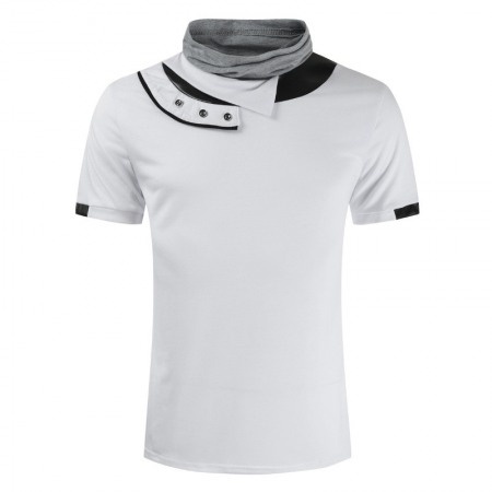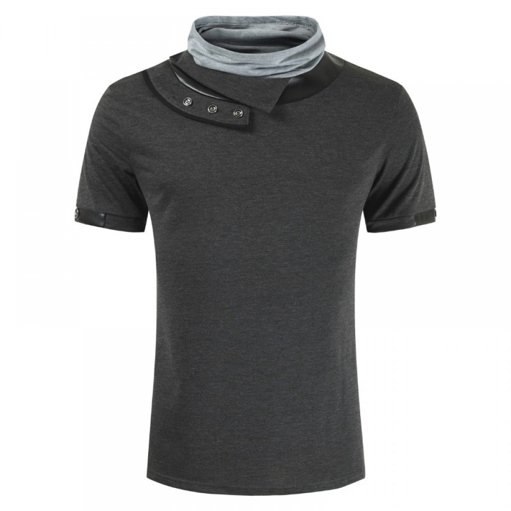 New Men's Personalized Sports T-Shirt Fashion Leather High Pile Collar Short Sleeve T-Shirts
