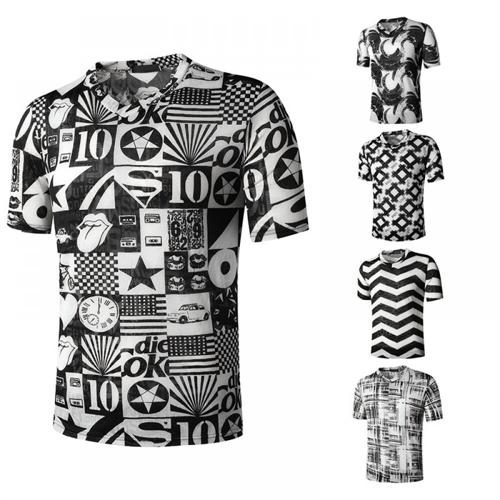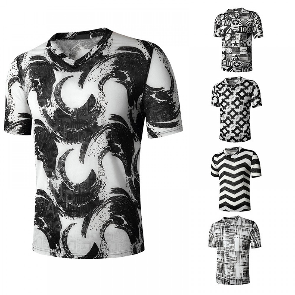 Summer Men's Nightclub Bar Fashion Casual Hot Stamping Printing Short-Sleeved Printed T-Shirt