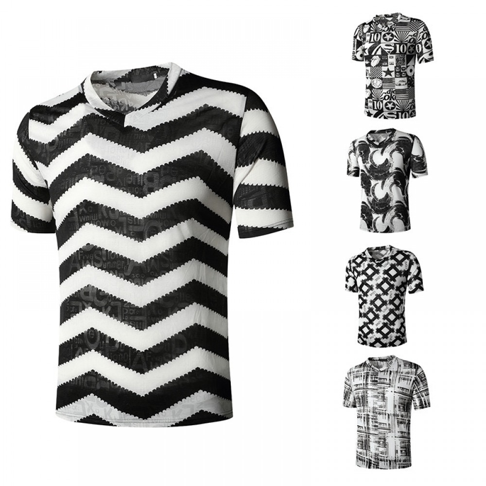 Summer Men's English Jacquard Fashion V-Neck Short-Sleeved T-Shirt